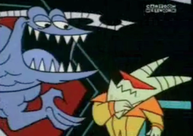 - Jerome tells the monsters to "chill the frag out". Two years later, Kevin Michael Richardson would voice Lobo, who would say "frag" as a catchphrase.