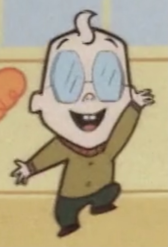 Elmer Sglue has a single lock of curly hair on his forehead, and wears round, opaque glasses. He wears a dark green sweater and blue pants. His design was slightly changed during the last two seasons of the show; he was given a round head.