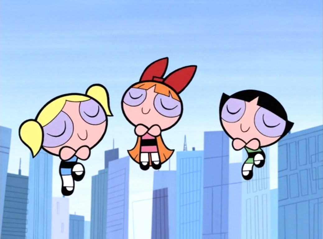 - When the girls saved a baby carriage from the monster, Buttercup's eyes are blue and she's wearing Bubbles' blue dress. Another animation mistake